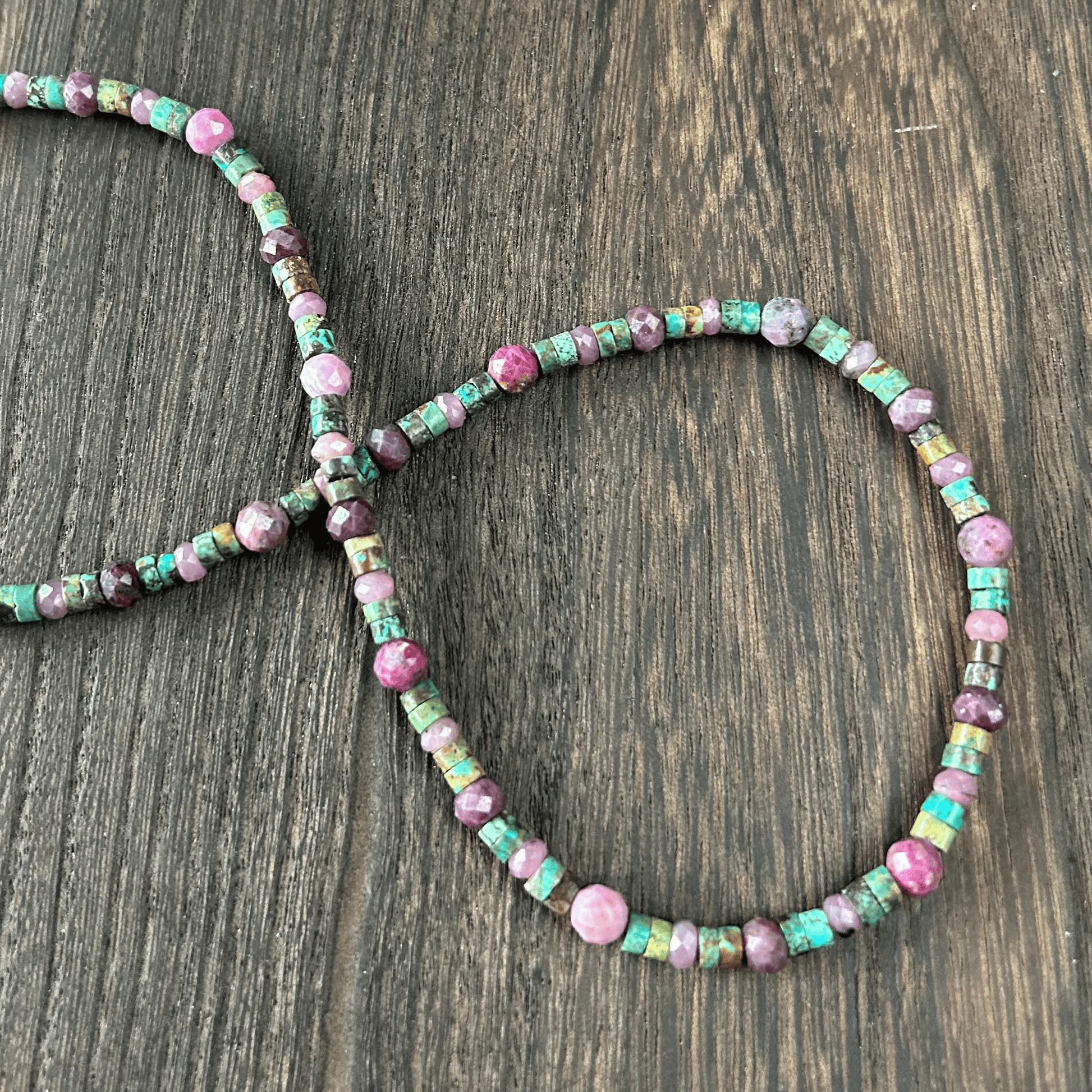📿 Simply Strung African Turquoise, Rhodonite, Ruby, Copper