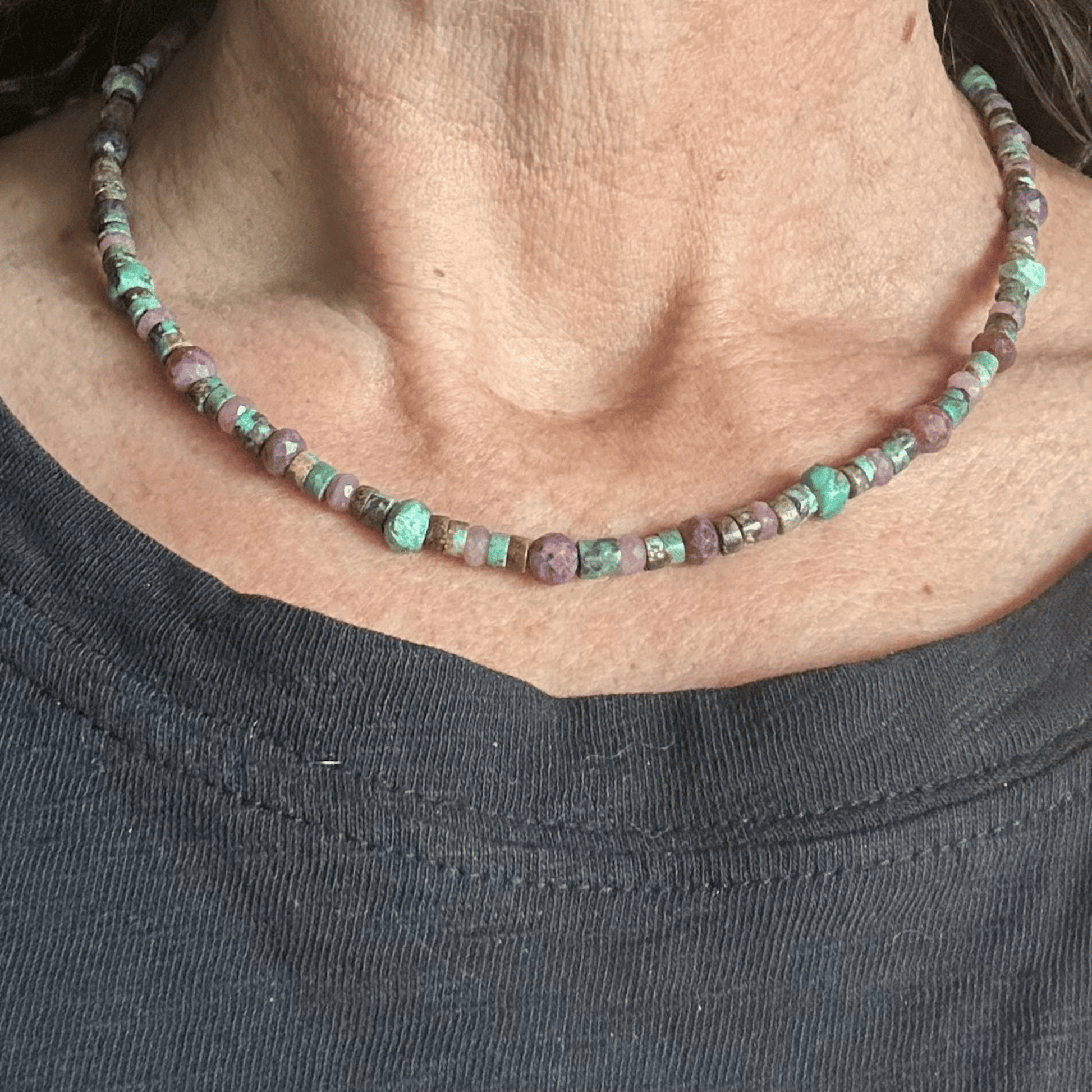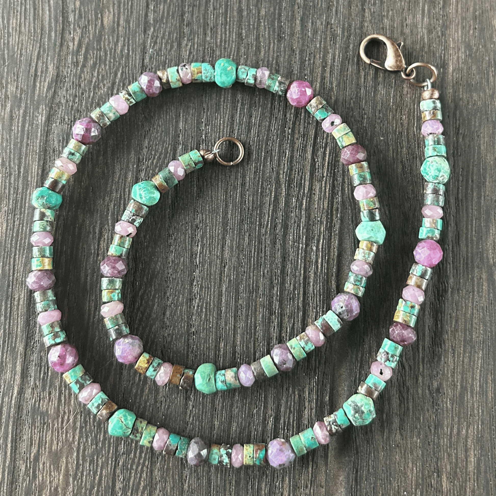 📿 Simply Strung African Turquoise, Rhodonite, Ruby, Copper